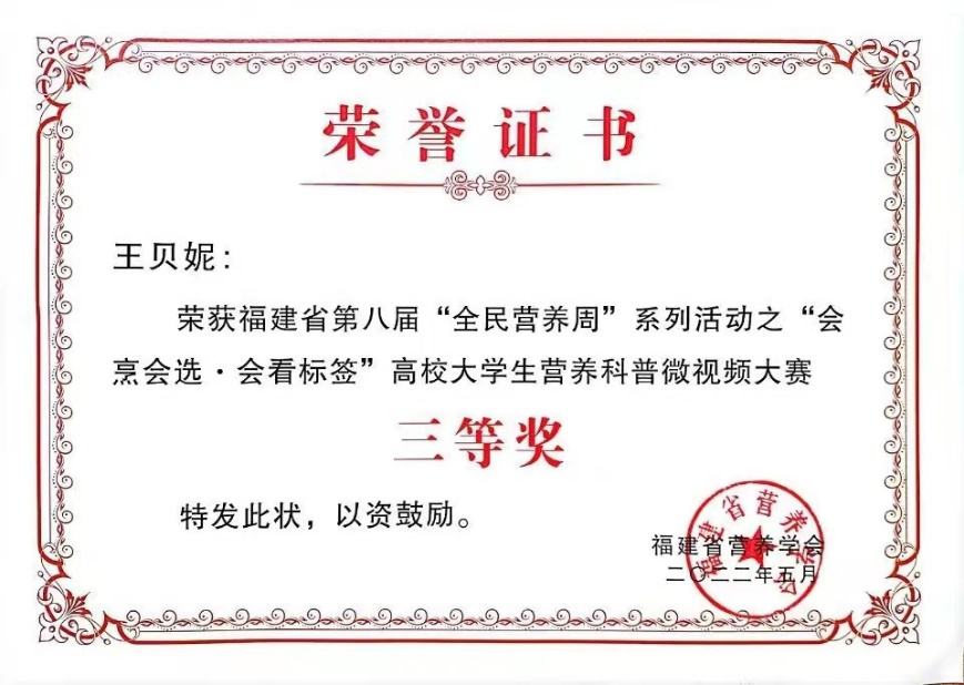 万搏在线登入学子在第八届“全民营养周”之“会烹会选·会看标签”福建省高校大学生营养科普微视频大赛中喜获佳绩
