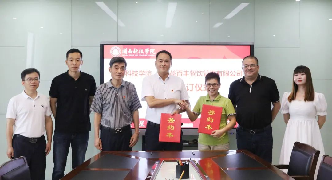 签约仪式于7月4日在学校第一会议室举行。福建益百丰餐饮管理有限公司副总经理蒋加棣、吴香妹,校长游小波、常务副校长周勇军和党政办公室、后勤管理处负责人出席签约仪式。
