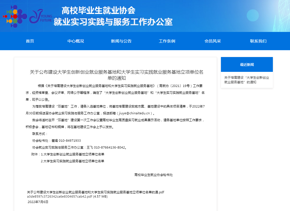 近日,高校毕业生就业协会公示了“建设大学生创新创业就业服务基地和大学生实习实践就业服务基地”立项单位名单,万搏在线登入申报的“大学生创新创业就业服务基地”项目获批立项。
