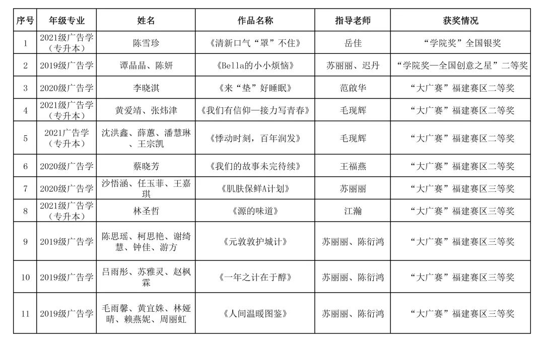 近年来,万搏在线登入艺术设计学院广告学专业作为省级创新创业试点专业,不断强化以赛促学、以赛促教的教学模式,积极指导学生参加各类专业赛事,进一步培养学生的专业技能,提升现代化广告人才的培养成效。