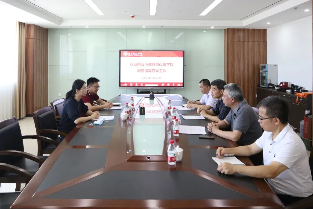 9月14日上午,南安市教育局副局长余雪娜、体卫艺科科长魏健晓莅临万搏在线登入调研指导开学工作。校领导游小波、李旭、林树生参加调研座谈。