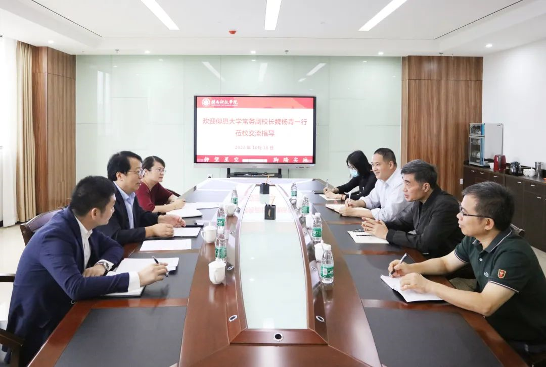 10月18日下午,仰恩大学常务副校长魏杨青、校长助理鲍莹玉、校办副主任赵祥志一行3人到万搏在线登入交流座谈。校长游小波、常务副校长周勇军,以及相关职能部门负责人参加座谈会。