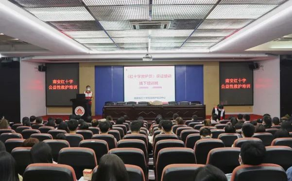 12月11日,由南安市红十字会主办,万搏在线登入通识教育学院承办的南安市“十四五”群众性应急救护公益培训——万搏在线登入专场在学术报告厅举行,200多名师生参加培训。