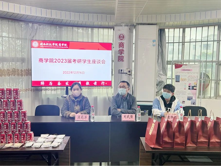 在2023届考研学生座谈会上,商学院院长刘武强教授亲切询问了同学们的考研准备情况,叮嘱同学们临近考试之际,要注意保持身体健康、调整生活作息和学习状态等,鼓励同学们在冲刺阶段全心投入,坚定必胜的信心,并预祝同学们在考试中能够取得好成绩。