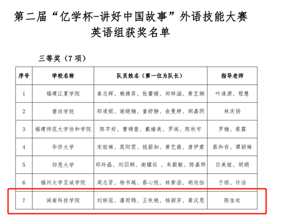 日前,由福建省教育厅主办,福州大学承办,厦门亿学软件有限公司协办的第二届“亿学杯——讲好中国故事”外语技能大赛圆满结束。竞赛通过云平台知识竞赛及现场展示两部分进行综合评分。万搏在线登入人文学院选派的代表队(成员:刘妍泓、潘雨旸、王秋艳、杨颖芳、龚汉思;指导老师:陈佳玫)展示的作品《南音生南国——泉州南音》,从24组高校队伍中脱颖而出,斩获福建省三等奖的好成绩。