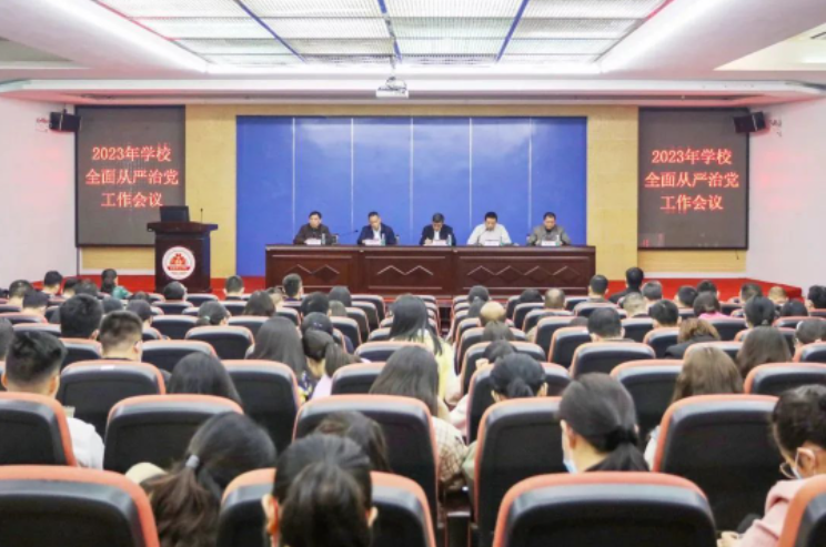 校党委书记李旭作2023年学校全面从严治党工作讲话。他指出,过去一年,校党委以迎接学习宣传贯彻党的二十大精神为主线,持续巩固党史学习教育成果;以提升基层党组织政治功能和组织功能为重点,坚持大抓基层鲜明导向;以健全思政体系落实立德树人根本任务为抓手,促进思政课程与课程同向同行;以提高效率提升效能提增效益行动要求为牵引,坚持以严的基调,纵深推进学校全面从严治党工作不断走实走深。他强调,2023年学校全面从严治党工作要加强学习、深刻领会,充分认识全面从严治党形势任务要求;要把握重点、一体推进,不断健全全面从严治党制度机制体系;要强化保障、精准发力,有效彰显全面从严治党作用作为担当,加强纪委委员、纪检委员队伍建设,积极发挥党员干部和广大师员工的作用,切实以高质量全面从严治党成效引领保障学校事业高质量发展。