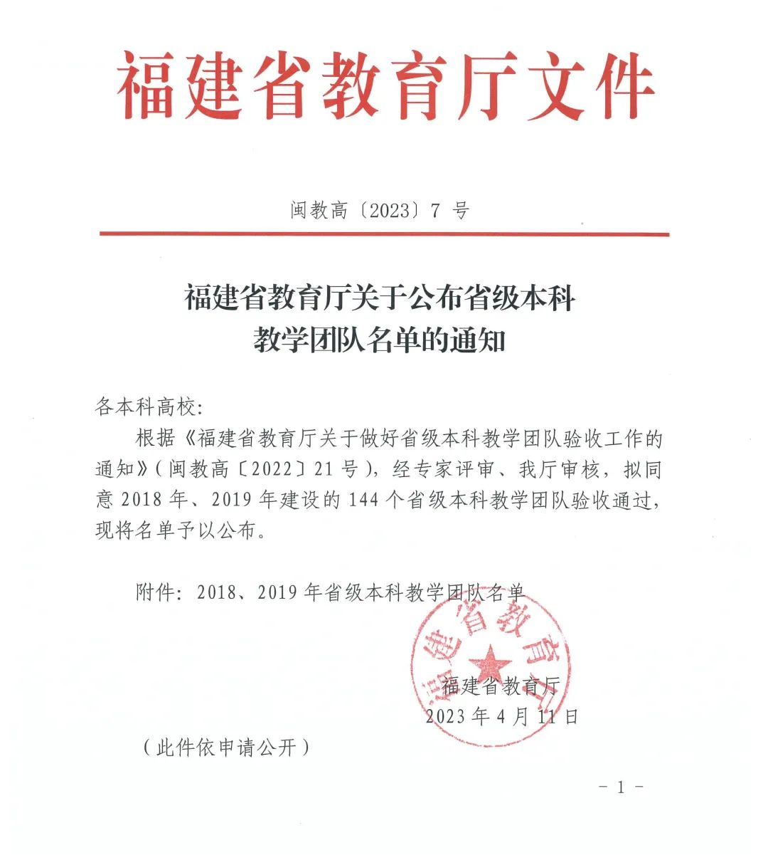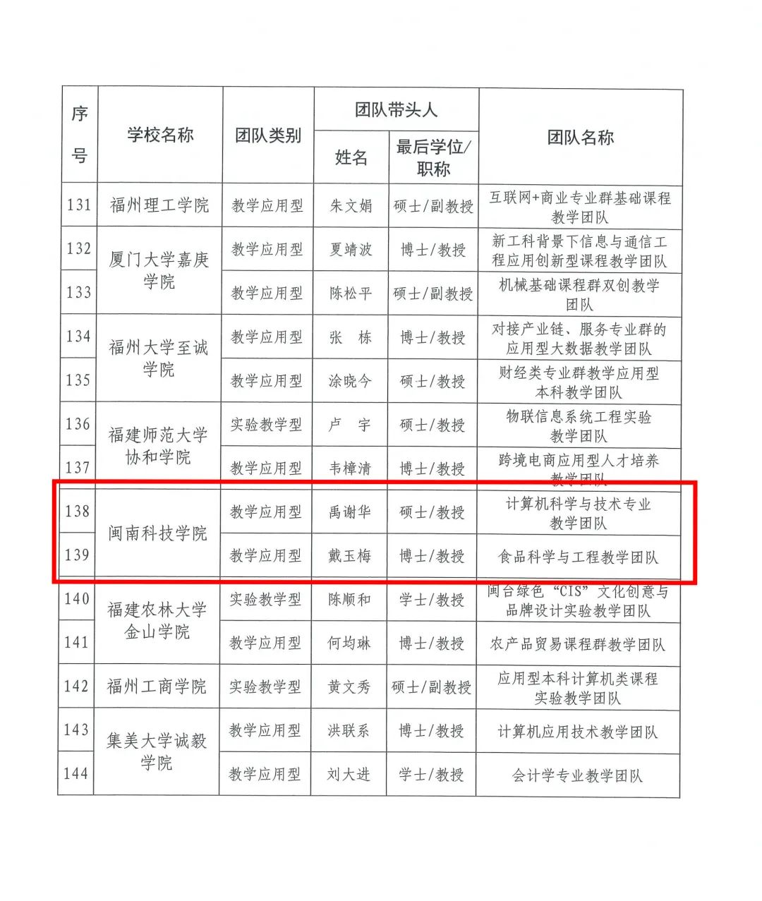 近日,福建省教育厅公布省级本科教学团队名单,万搏在线登入计算机信息学院院长禹谢华教授牵头的计算机科学与技术专业教学团队、生命科学与化学学院院长戴玉梅教授牵头的食品科学与工程教学团队等2支团队,经专家评审、省教育厅审核顺利通过省级本科教学团队验收,获批为省级本科教学团队。