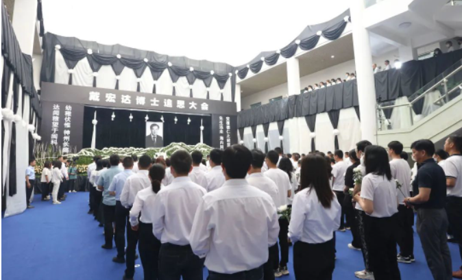 在答谢环节,戴宏达博士亲属代表戴宽南致答谢辞,向参加今天追思会的各级领导、亲朋好友、老师们、同学们表示衷心的感谢,向发来唁电、唁函,送花圈、挽联的单位、各位领导、亲朋好友们,表示深深的感谢!戴宽南讲述了戴宏达博士在爱国爱乡、倾资兴学、热心公益事业等领域做出的突出贡献,表达了对戴宏达博士深切的怀念,表示戴宏达博士虽然离我们而去,但永远活在我们心中,戴宏达博士的精神永垂不朽,将不断照耀和激励着我们这些后辈们去完成他未尽的遗志。
