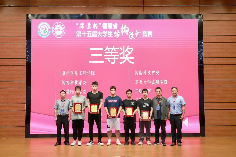 全国大学生结构设计竞赛是教育部和财政部联合发文批准的9个首批全国大学生学科竞赛资助项目之一,是土木建筑工程领域级别最高、规模最大的学生创新竞赛,被誉为“土木建筑皇冠上璀璨的明珠”。福建省大学生结构设计竞赛作为全国大学生结构设计竞赛的分区赛,是福建省土木工程学科实现多元化培养大学生创新能力、设计能力、实践能力和综合素质的高水平竞赛,具有很强的创造性和挑战性,对于加强福建省大学生之间的交流学习、选拔优秀的队伍代表福建参加全国大学生结构设计竞赛发挥重要作用。