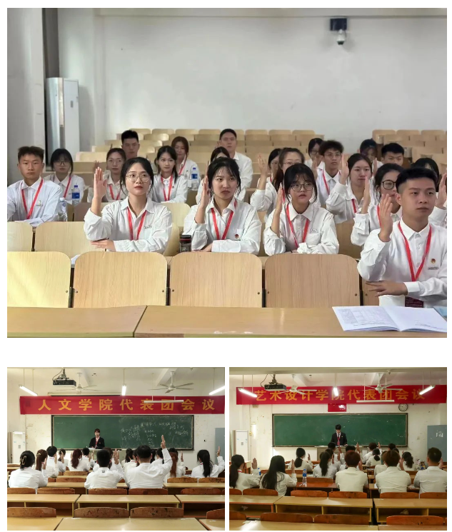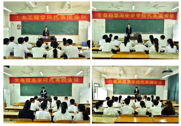 大会期间,共计召开了一次大会预备会议,一次各代表团会议,两次大会全体会议,三次主席团会议,选举产生了新一届学生会委员会委员和新一届学生会主席团,并审议通过了各项工作报告决议。在第四届学生会委员会第一次全体会议上,经全体委员会投票,姚冬梅、陈希瑶、许紫嫣当选为校新一届学生会主席团成员。
